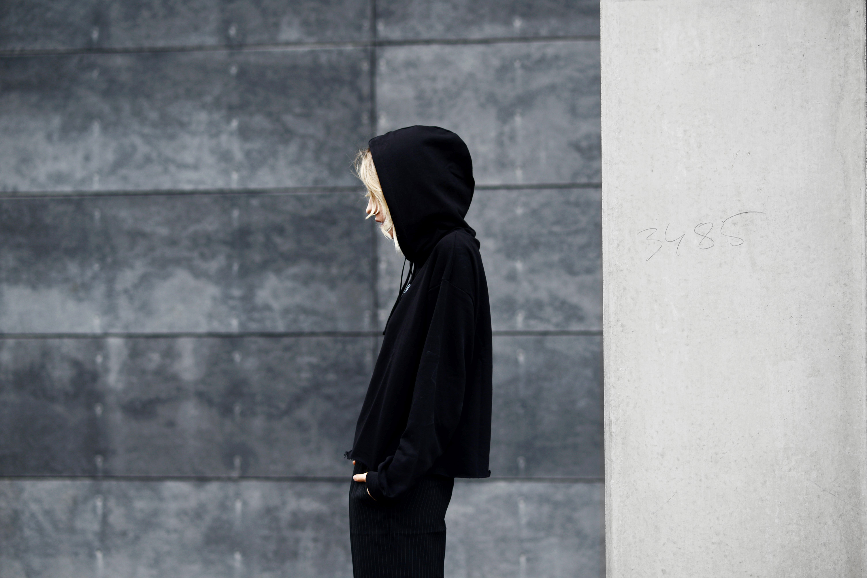 Okej- det här är är vad jag nämnde förut om min ambivalenta stil: chillaxed hoodie, bloggig choker, kritsträcksrandiga kostymbyxor och lady-heels. Vad är detta ens? Haha.