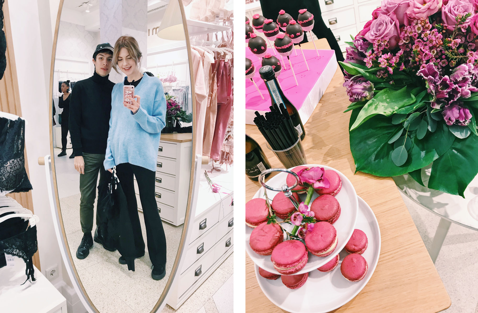 One evening we were invited to Intimissimi to “get equipped for Valentine’s day”. Sean was drinking sparkling wine, comparing bras and eating pink macarones with me and a bunch of other girls. Haha.